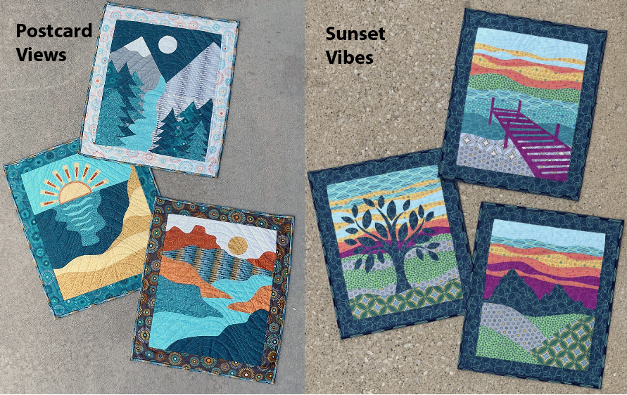 Create 3 landscape quilts with designer/teacher Lisa Swenson Ruble! These quilts are assembled on a muslin base using raw edge fusible applique techniques. In this workshop, we’ll walk through the assembly of all three designs, tips and tricks during the process, and machine quilting options. The pattern includes templates and instructions for all three quilts (your choice of Postcard View and Sunset Vibes - and workshop may be comprised of both).