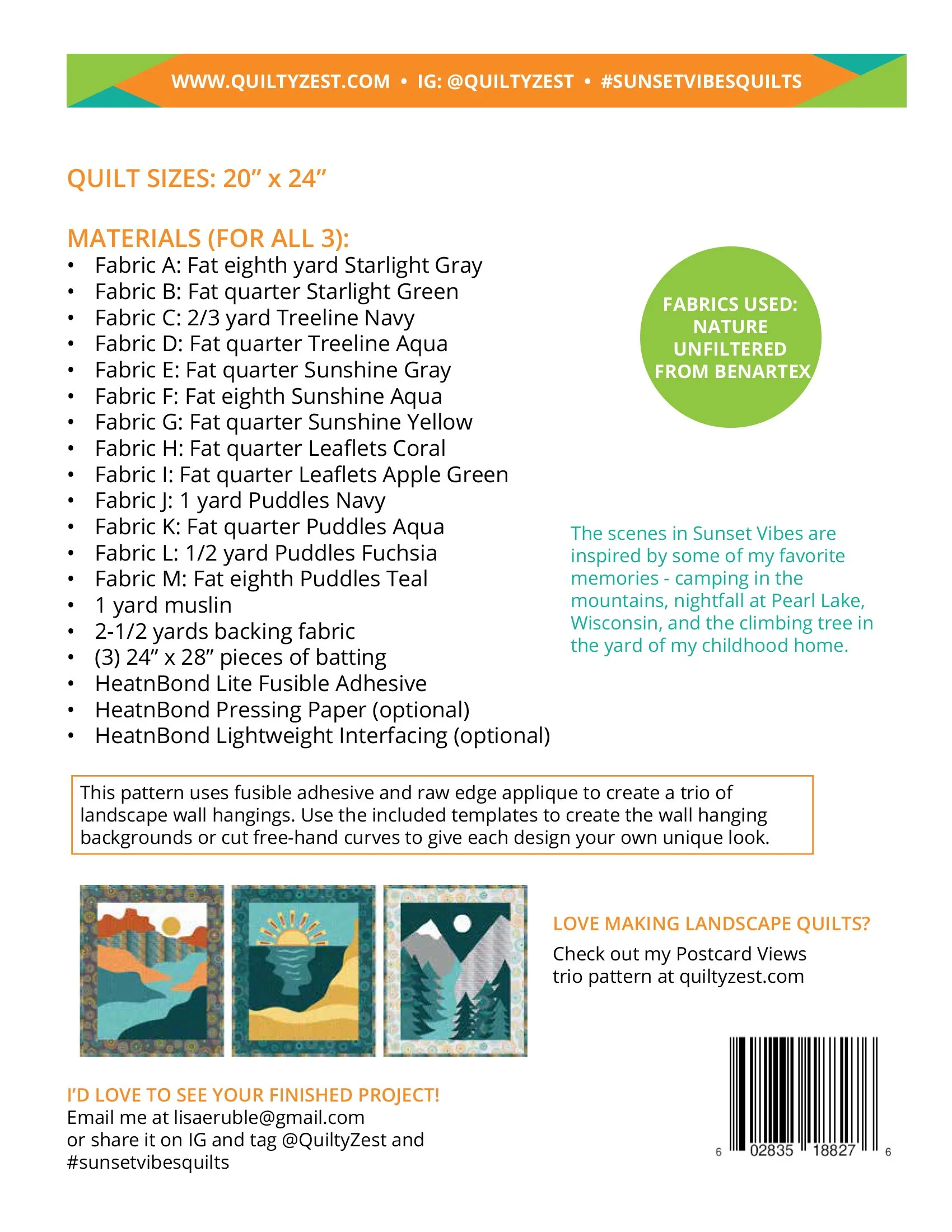Designing quilts is one of my favorite parts of quilting! I’ve designed and published a variety of quilt patterns, from traditional piecing to improv piecing to applique. Each one has been edited by a technical editor and sewn to ensure that the directions are correct. Since my background is in quilt magazine publishing, my patterns include clear, concise directions and helpful full-color diagrams to make quilt assembly easy. Patterns are available as digital downloads. If you’d prefer a printed version, please email me.